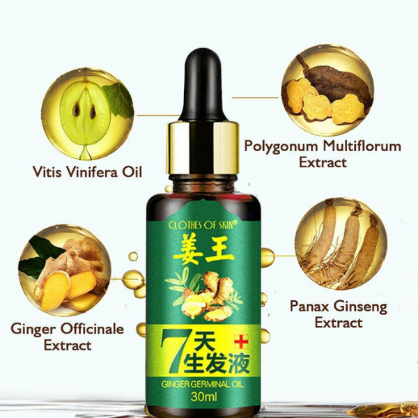 Hair Regrow 7 Day, Ginger Germinal Essential Oil Hair Growth Hair Loss Treatment Hair Care Hair Growth Serum for Men & Women, 30ml