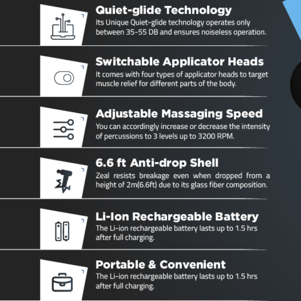- 6 Speed Settings: 6 Speeds Choice for you, giving your muscles a deep massage. It is ideal for muscle recovery after exercise.